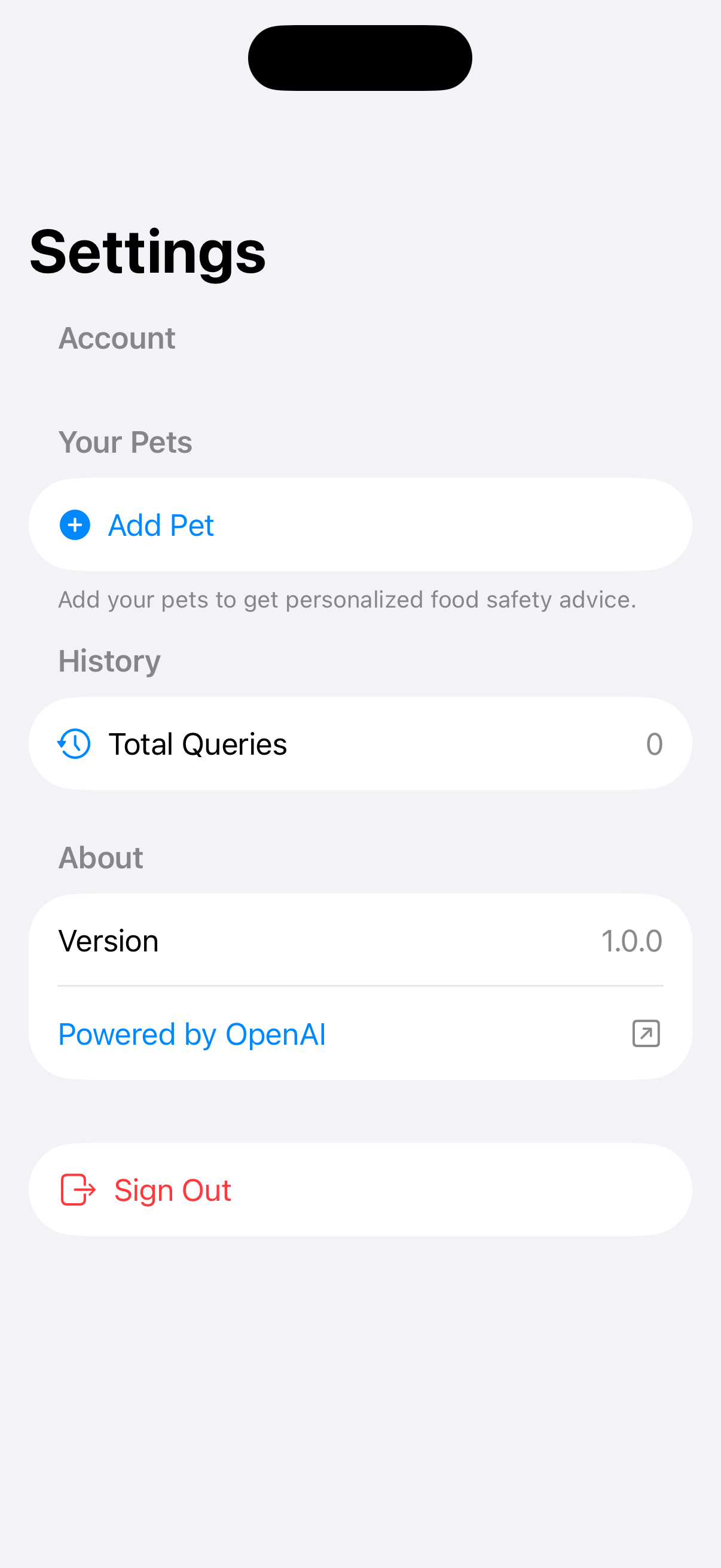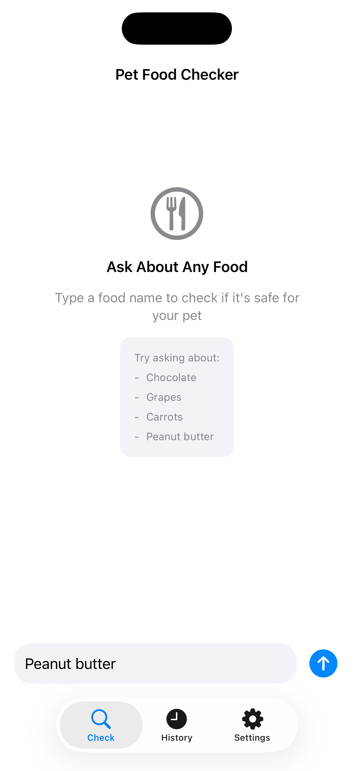 Type in what you’re considering sharing and get a safety check in seconds. The response tells you whether the food is safe, requires caution, or should be avoided entirely - along with a short explanation and alternative suggestions if needed.
